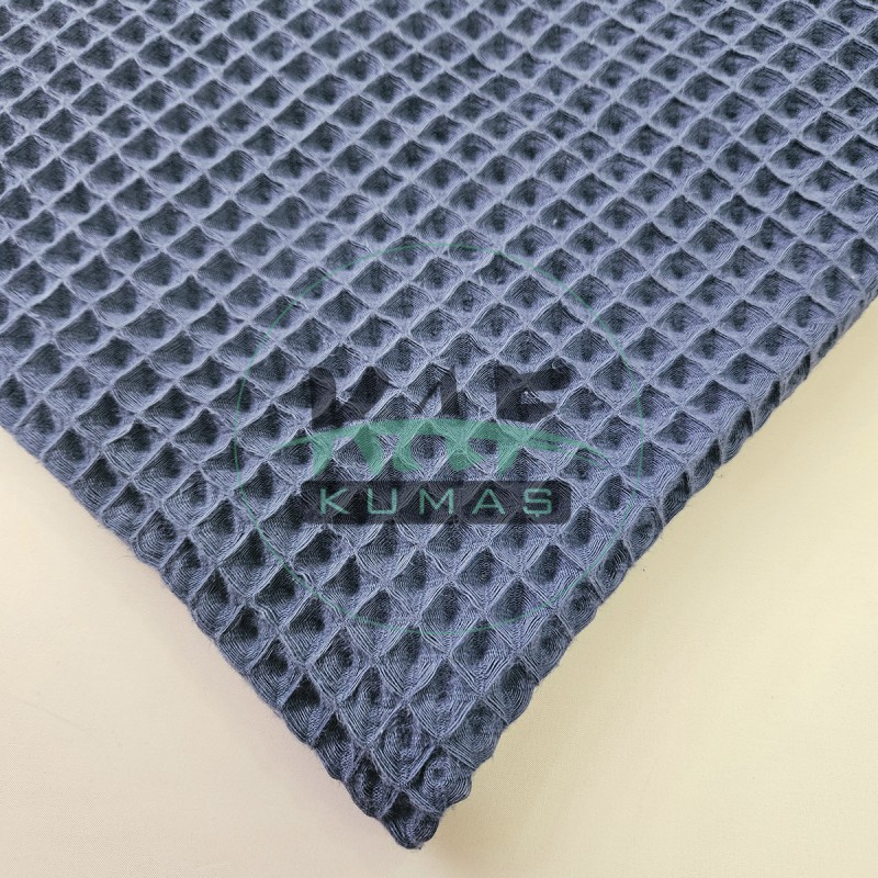 %100 Pamuklu 1 mt Büyük Kareli İndigo Waffle Pike Kumaş