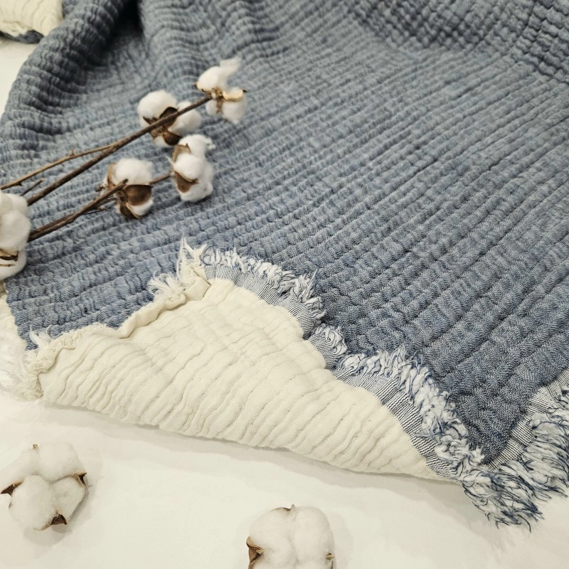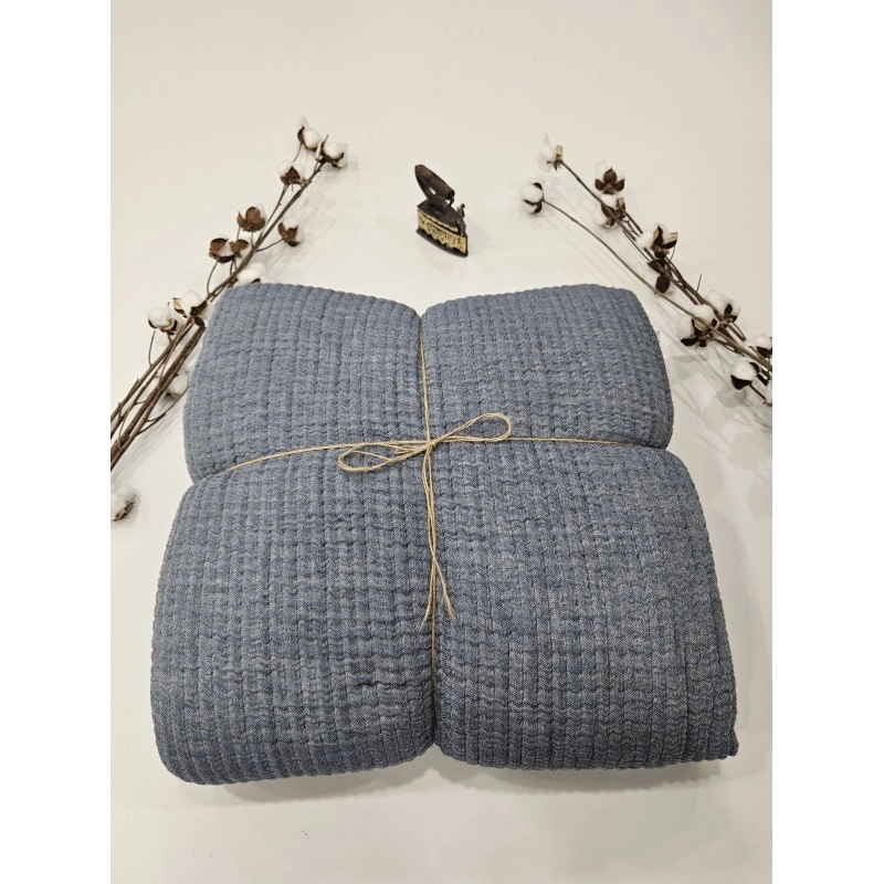 7 Katlı Mavi Çift Taraflı Dolgulu Çift Kişilik Müslin Battaniye | 230 x 240 cm