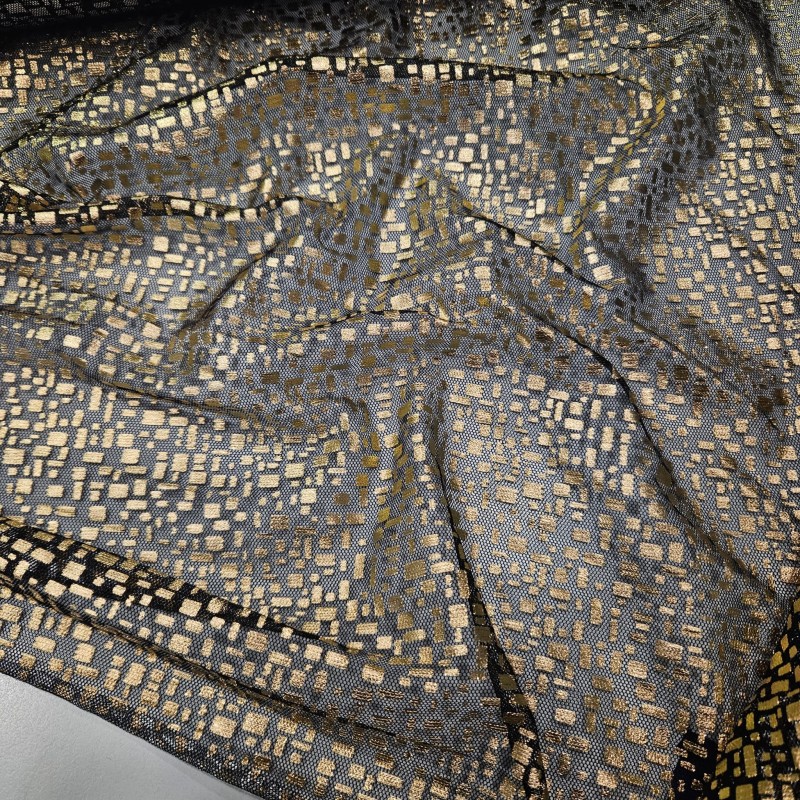 Altın Duvar Baskılı Likralı Siyah Tül Kumaş | R4-13
