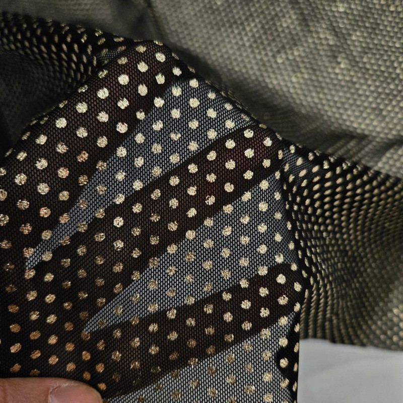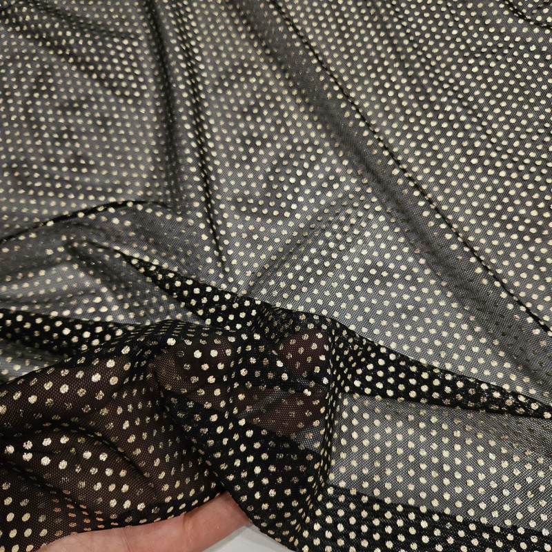 Altın Varak Kaplama Puantiye Siyah Tül Kumaş | K-11