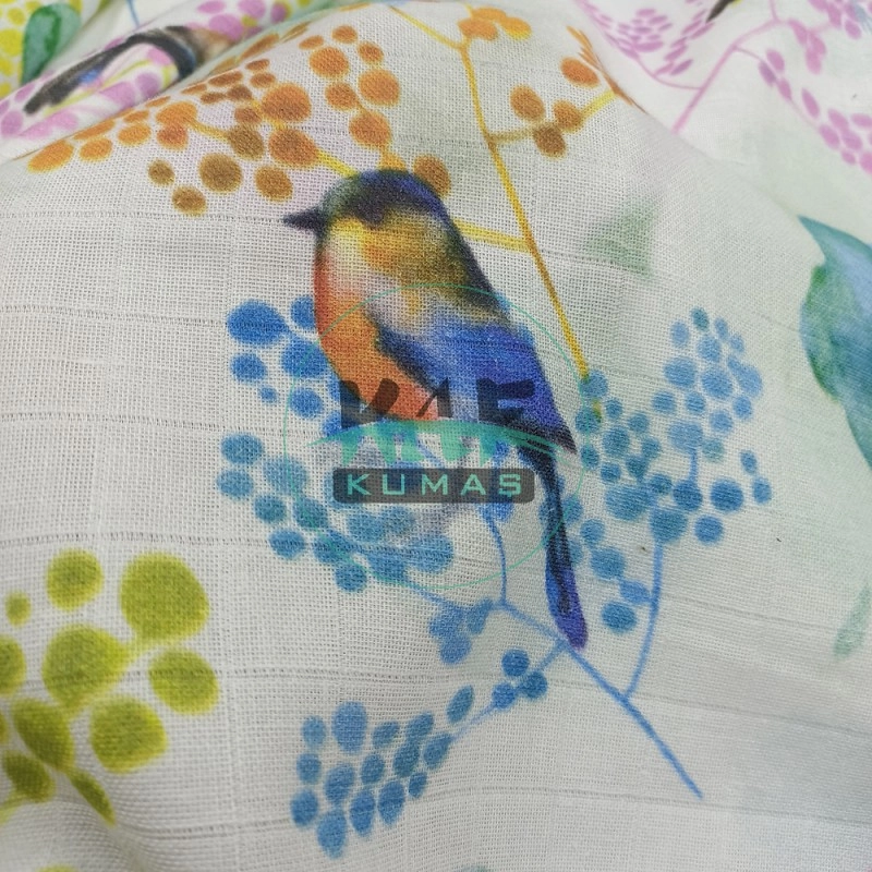 | Kumaş Hakkında | Kumaş Karışımı:%100 Pamuk Kumaş Gramajı: 150 gr/m2 Kumaş Eni: 155 cm Nerede Kullanılır: Bebek Kundağı, Bebek Puset Örtüsü, Bebek Çarşafı, Bebek Örtüsü, Bebek Ağız Silme Bezi, Bebek Ter Silme Bezi, Çocuk Pijama Takımı, Çocuk Tulumu Ve Çocuk Gömleklerinde Kullanılmaktadır. |