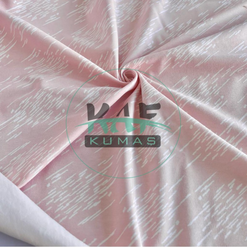 Baskılı Pamuk Penye Süprem Kumaş | Pembe Zemin Çizgiler