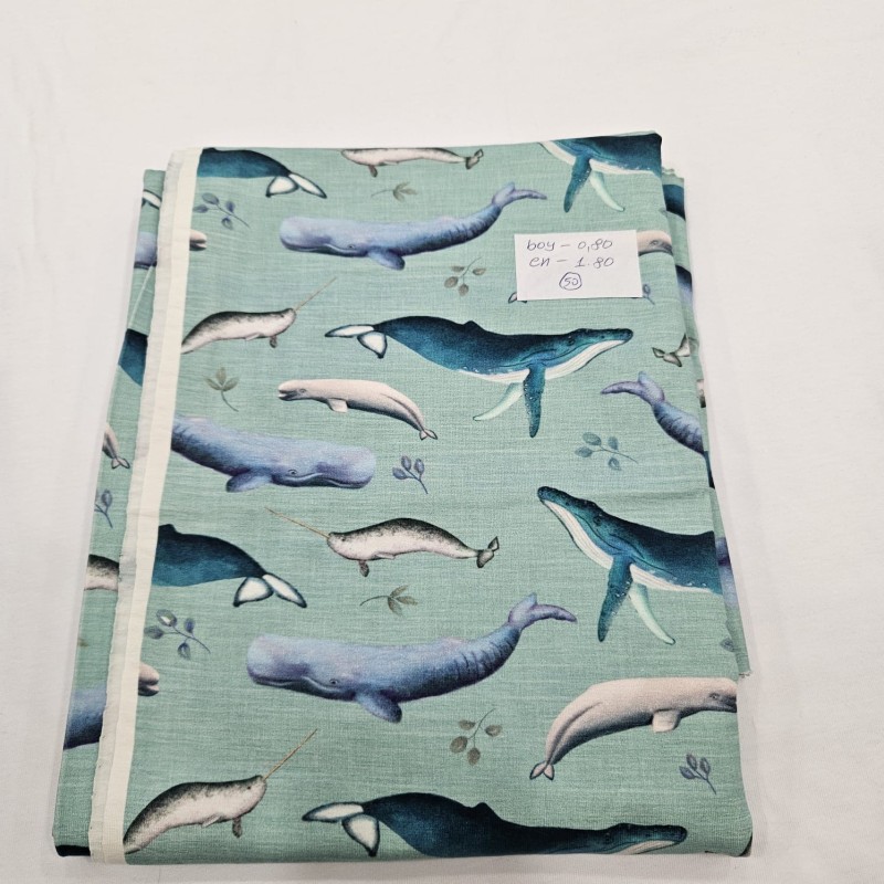 Baskılı Pamuk Penye Süprem Parça Kumaş| Balina 50