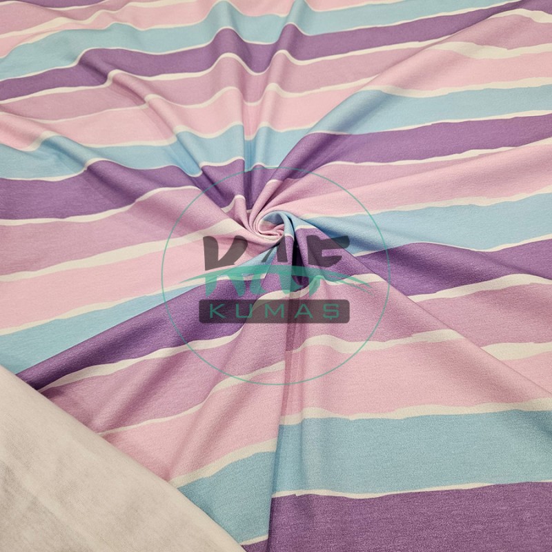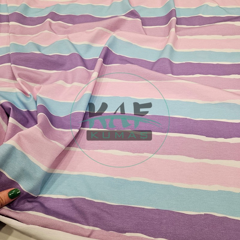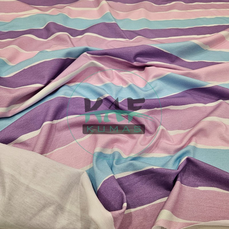 Dijital Baskılı Penye Süprem Kumaş | Mor Çizgili