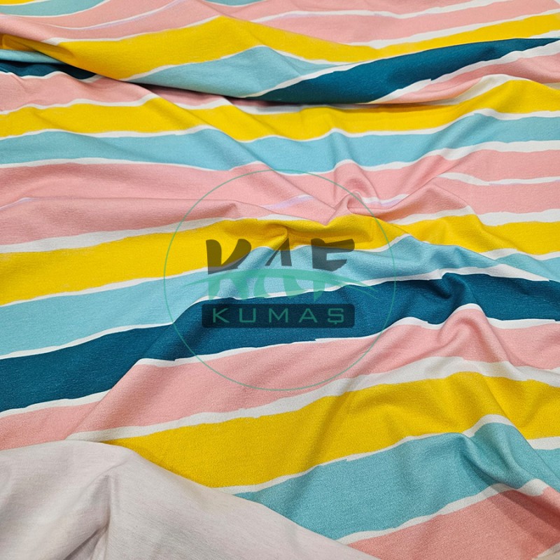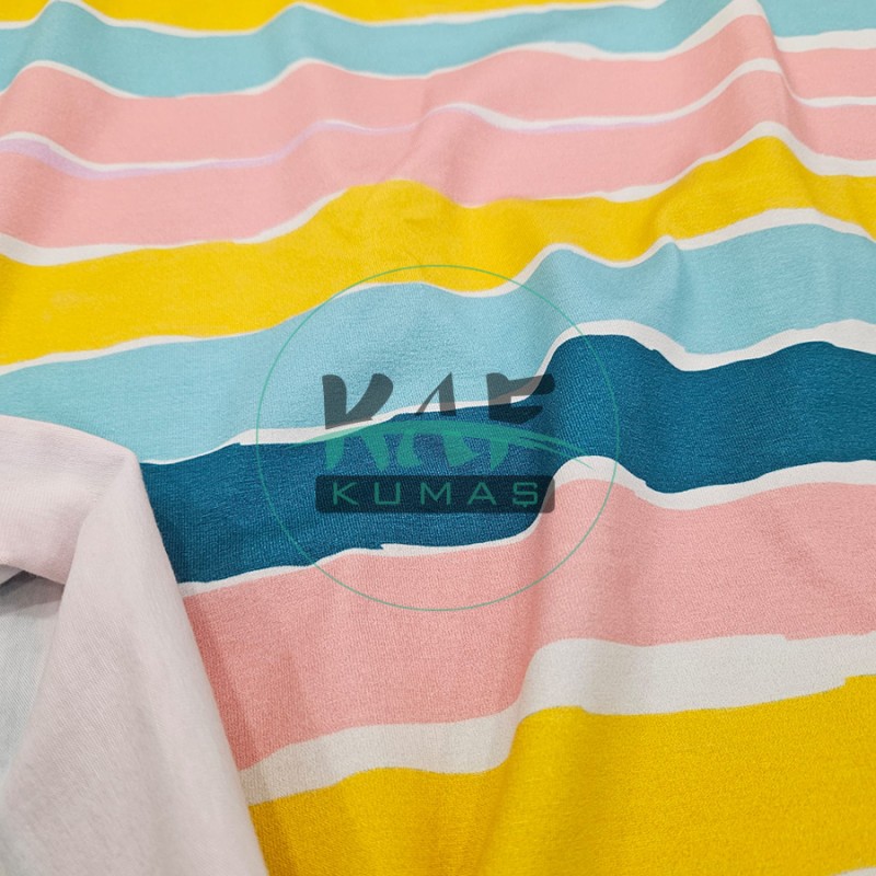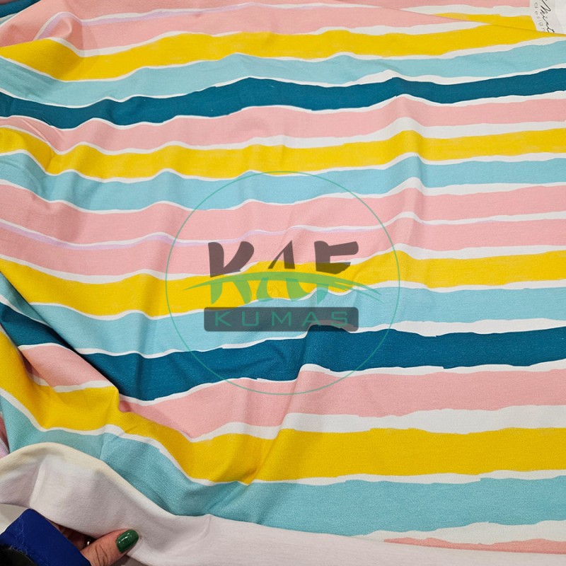 Dijital Baskılı Penye Süprem Kumaş | Navy Çizgili