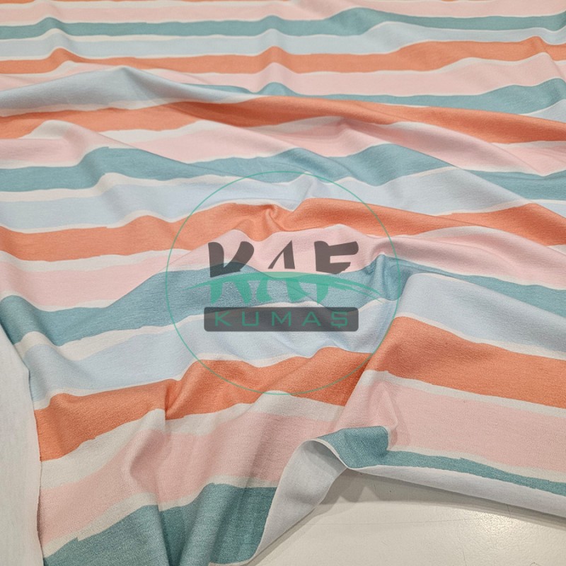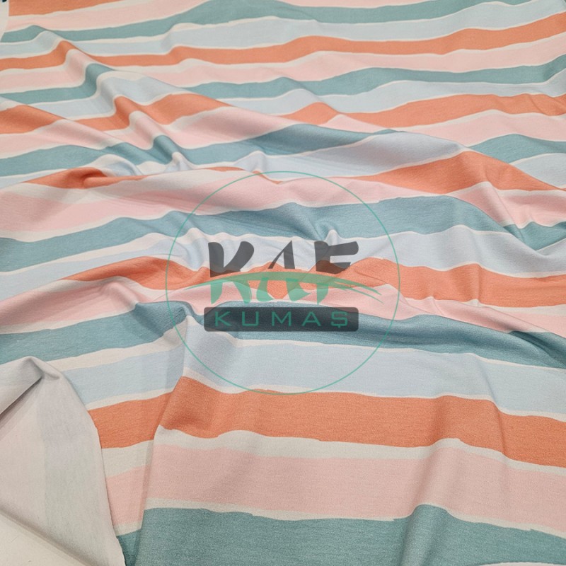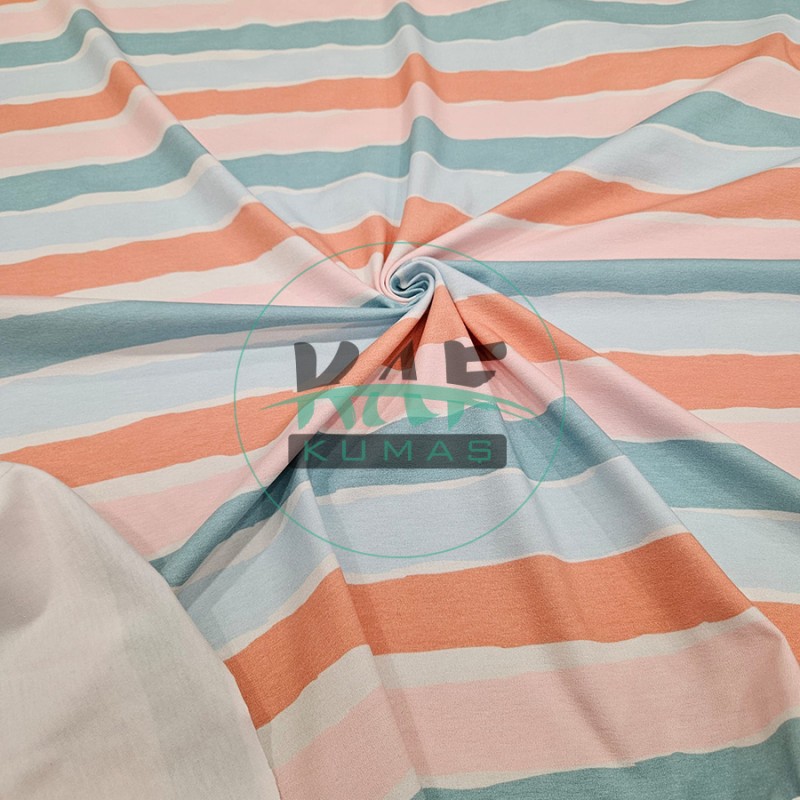 Dijital Baskılı Penye Süprem Kumaş | Pembe Çizgili