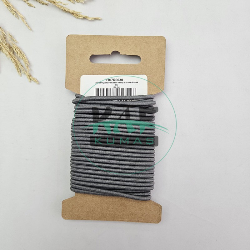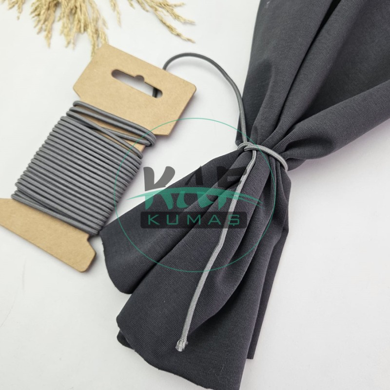 Gri 3 mm Yuvarlak Yumuşak Lastik İp 5 mt | Bel Paça Don Lastiği | Aksesuar Lastiği