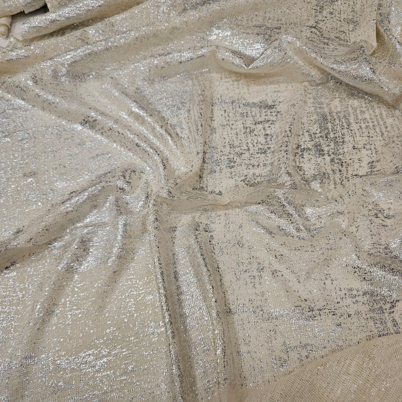 Gümüş Kumlama Baskı Krem Delikli Süprem Kumaş | A-08