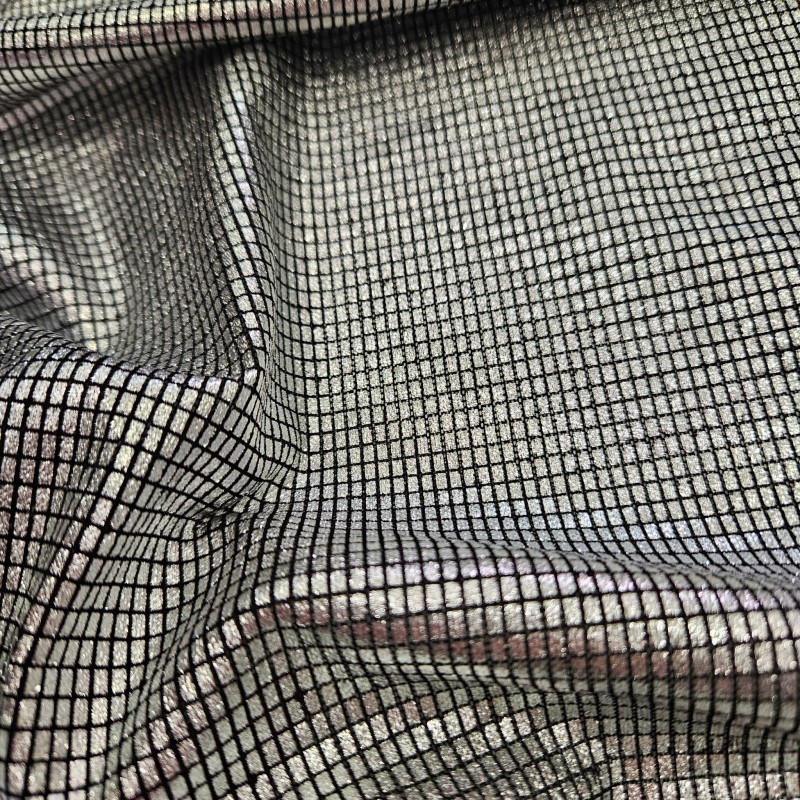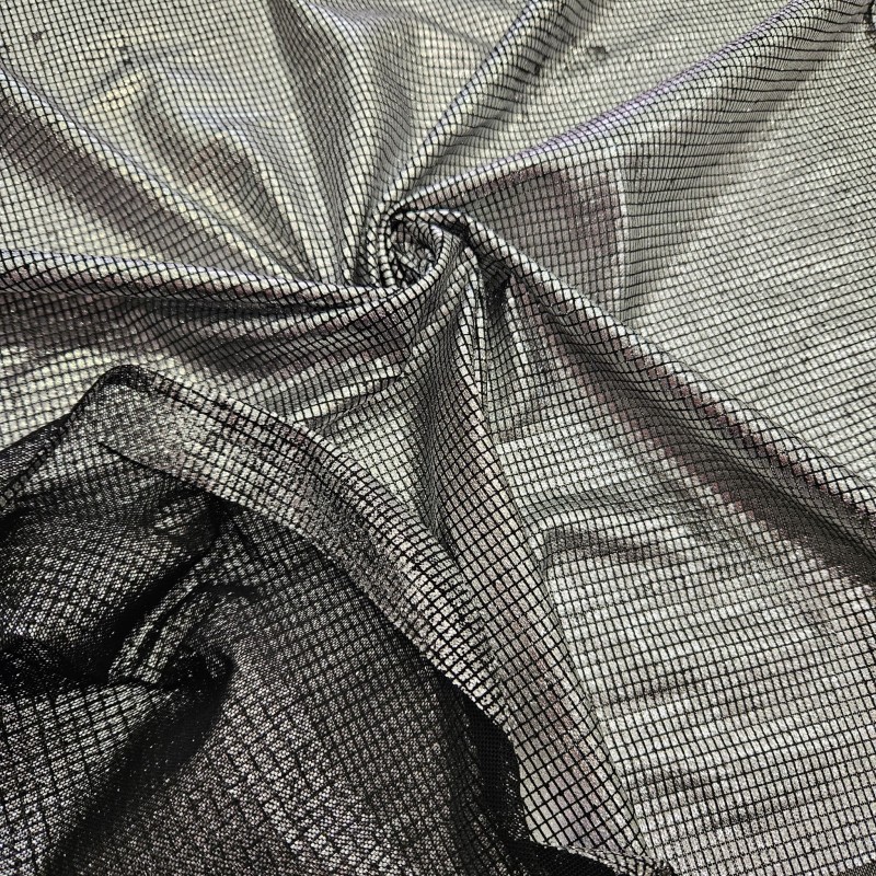 Gümüş Sim+Varak Dikdörtgen Desen Outlet Tül Kumaş | R2-4