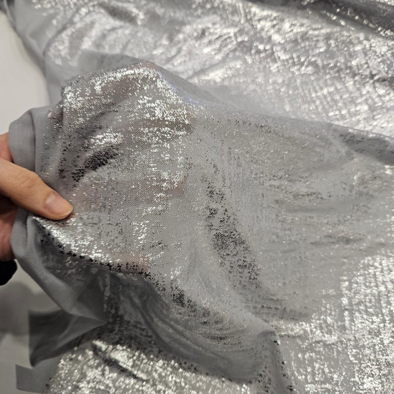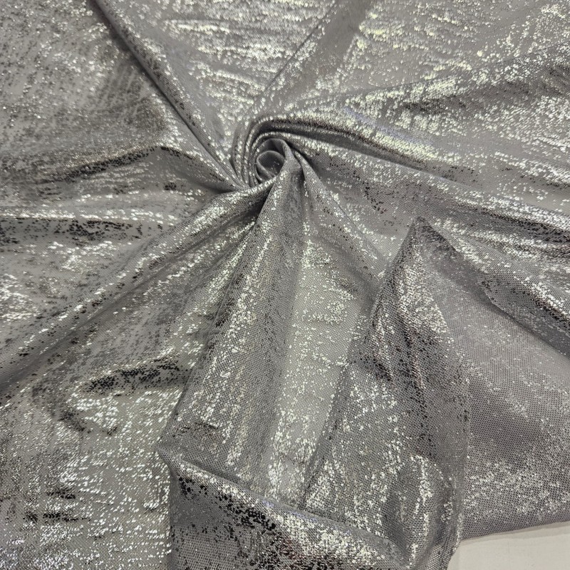 Gümüş Varak Batik Desen Gri Tül Kumaş | R4-02