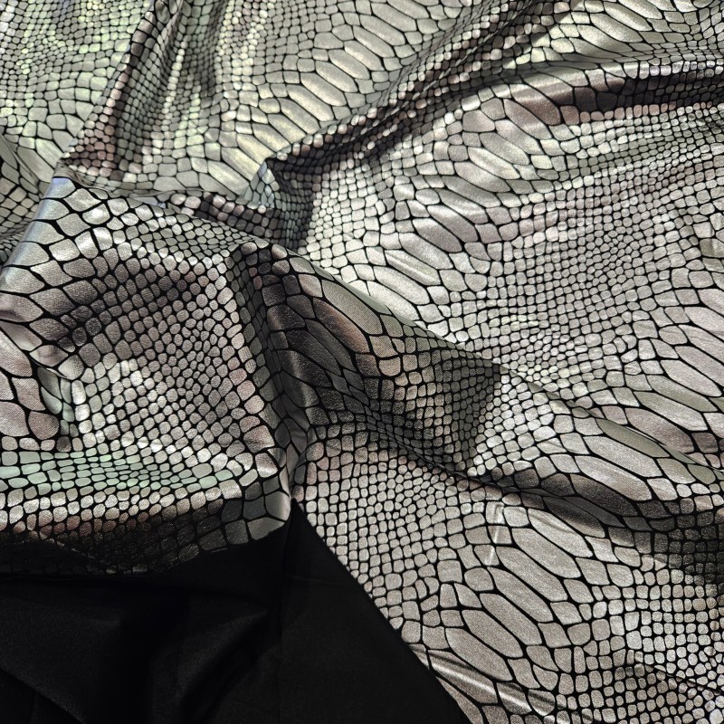 Gümüş Varak Piton Desen Süprem Kumaş | D-04