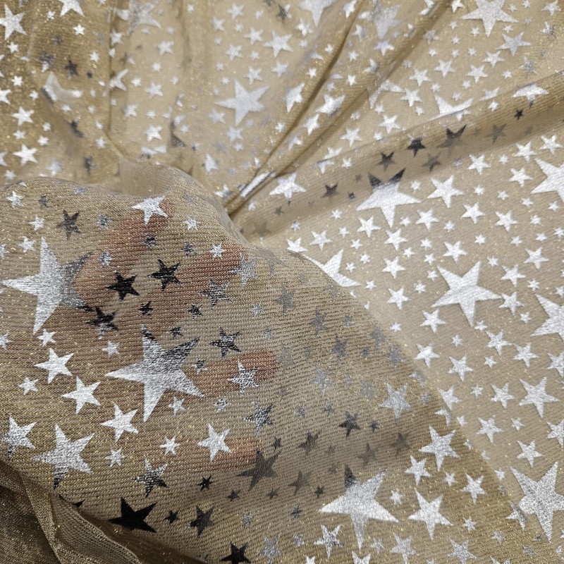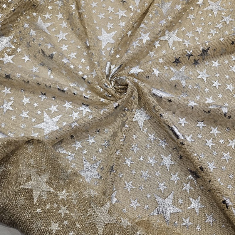 Gümüş Varak Yıldız Desen İnce Örme Kumaş | C3-14