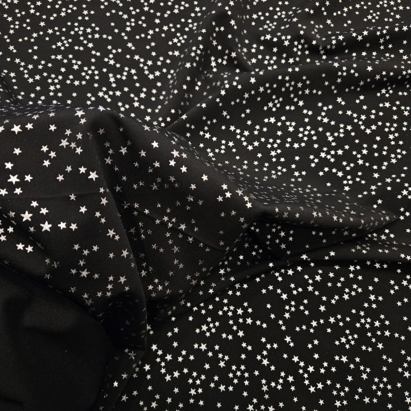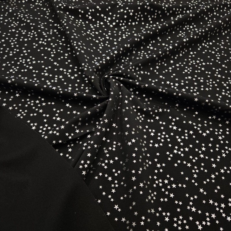 Gümüş Yıldız Baskı Siyah İnterlok Kumaş | C-1