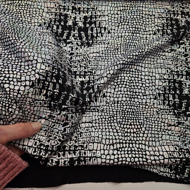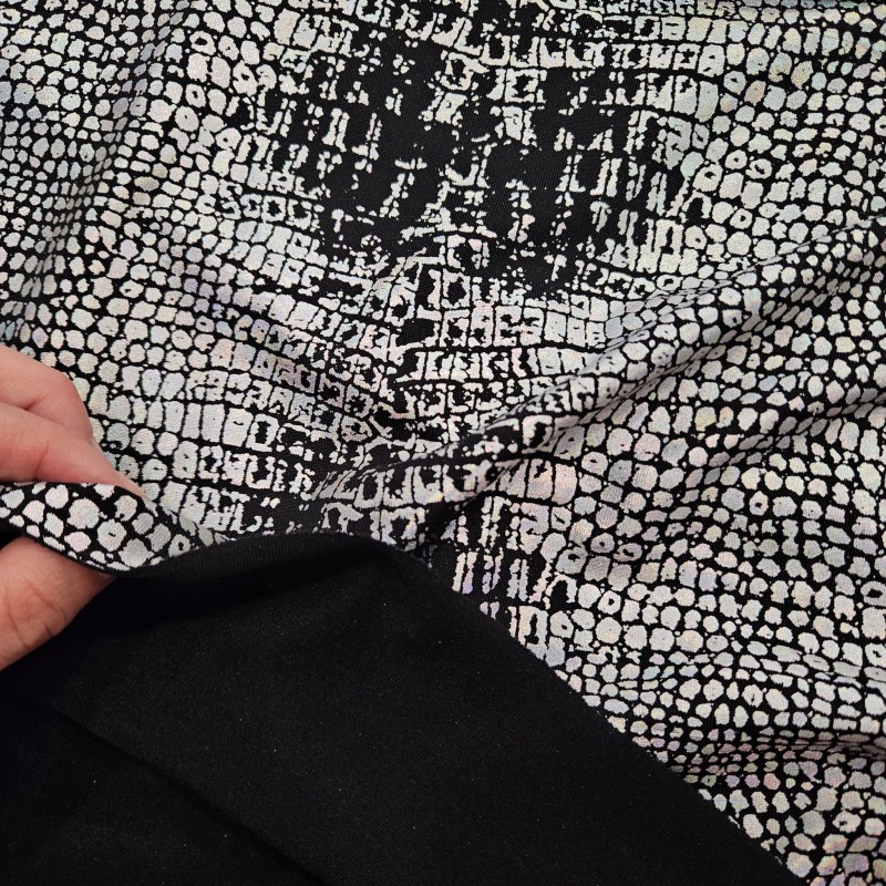 Hologramlı Gümüş Varak Yılan Desen Lyc Süprem Kumaş | X-07