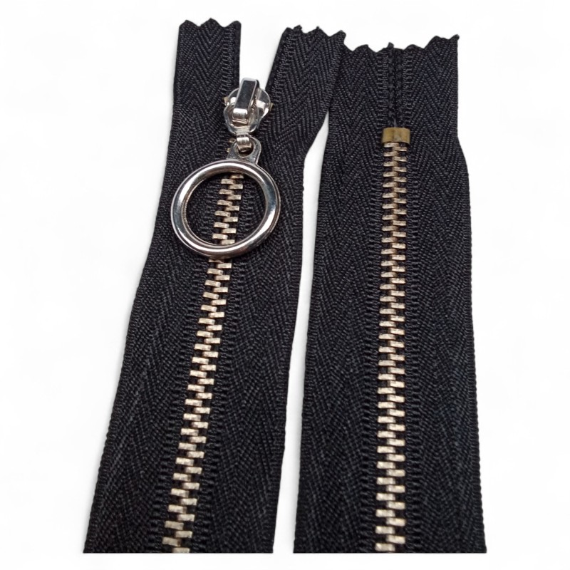 Metalik Dişli Yuvarlak Halka Fermuar | Mont-Çanta Fermuarı Uzunluk: 20 cm Siyah