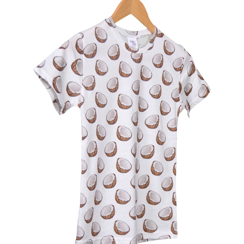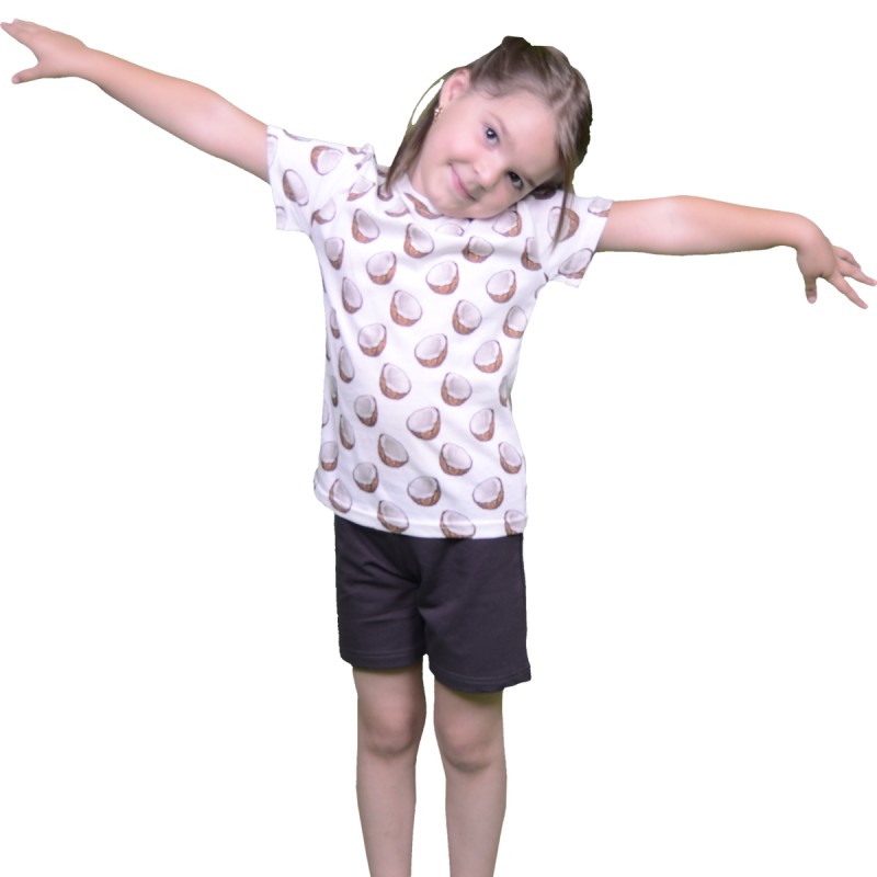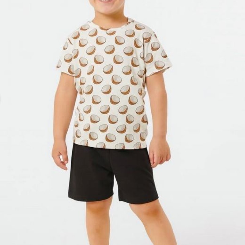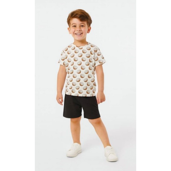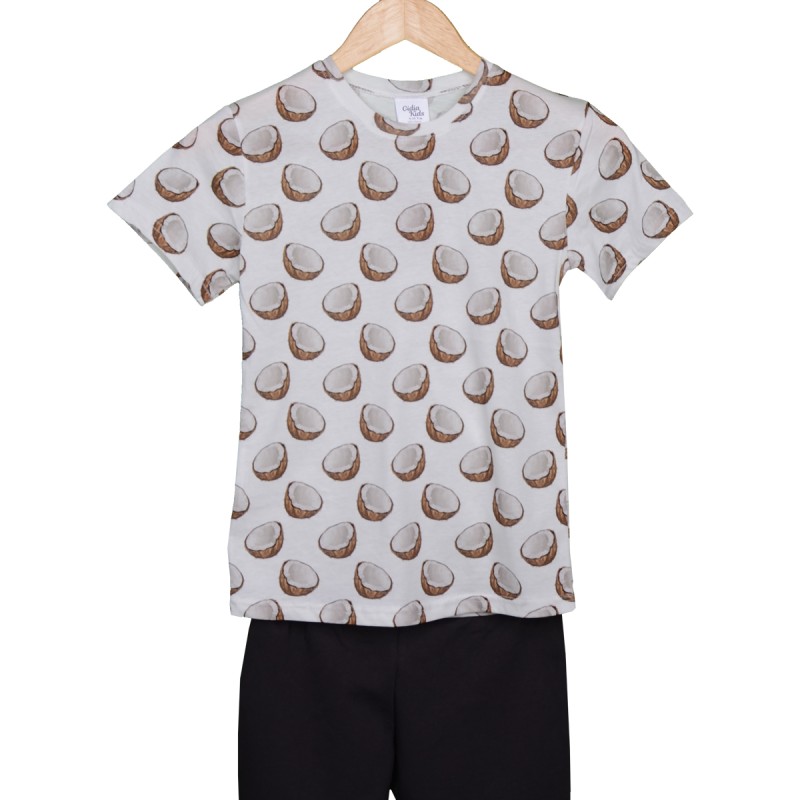 Pamuklu Günlük İkili Çocuk Takımı | Coconat Desen | Tişört: %100 Pamuk, Şort: %95 Pamuk %5 Likra