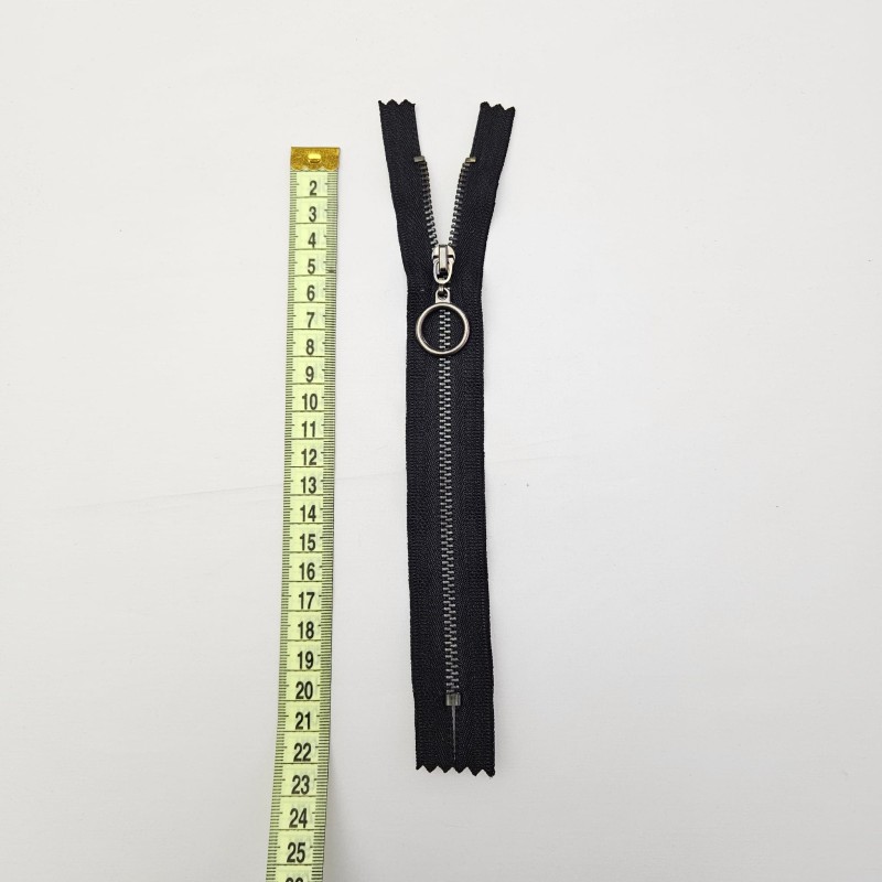 Siyah Metalik Dişli Yuvarlak Halka Fermuar | Mont-Çanta Fermuarı Uzunluk: 20 cm Siyah