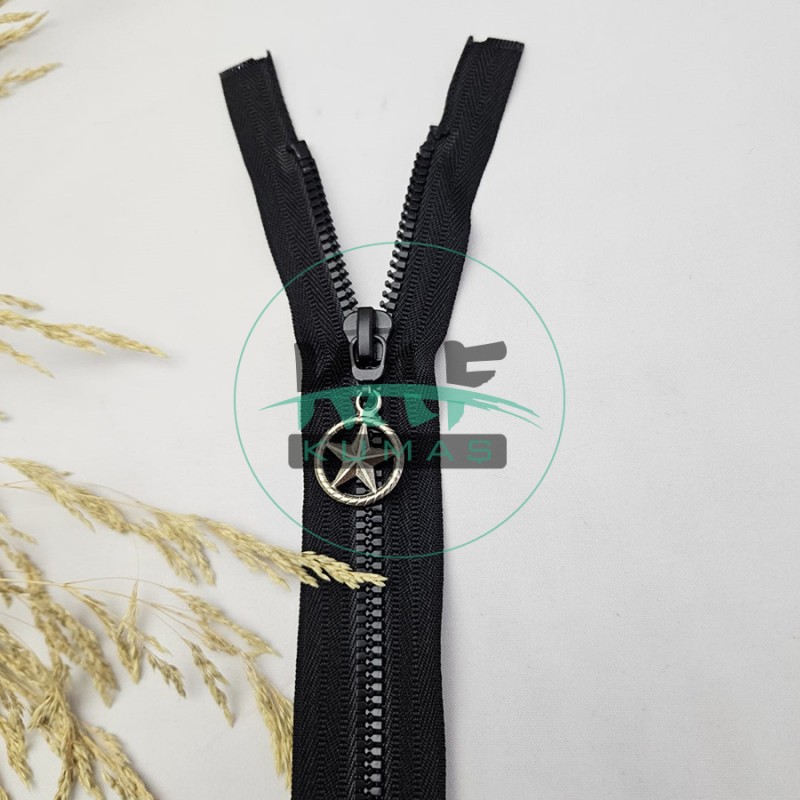 Siyah Renk Yıldız Elcikli Açık Uçlu Fermuar | Naylon Dişli Fermuar Uzunluk 58 cm
