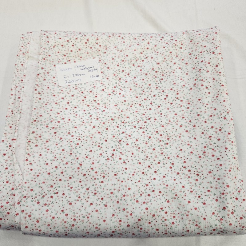 | Kumaş Eni | Kumaş Eni: 200 cm Kumaş Boyu: 220 cm Kumaşın ortasında boydan boya kat izi vardır. (baskı sırasında kumaş ortadan katlandığı için o kısım baskı almamıştır.) kumaş kenarlarından küçük ürünler veya temizlik bezi yapılabilir.) |