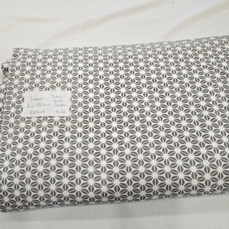 | Kumaş Eni | Kumaş Eni: 150 cm Kumaş Boyu: 320 cm Kumaşın ortasında boydan boya kat izi vardır.(baskı sırasında kumaş ortadan katlandığı için o kısım baskı almamıştır.) kumaş kenarlarından küçük ürünler veya temizlik bezi yapılabilir.) |