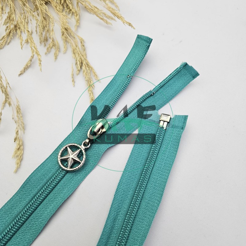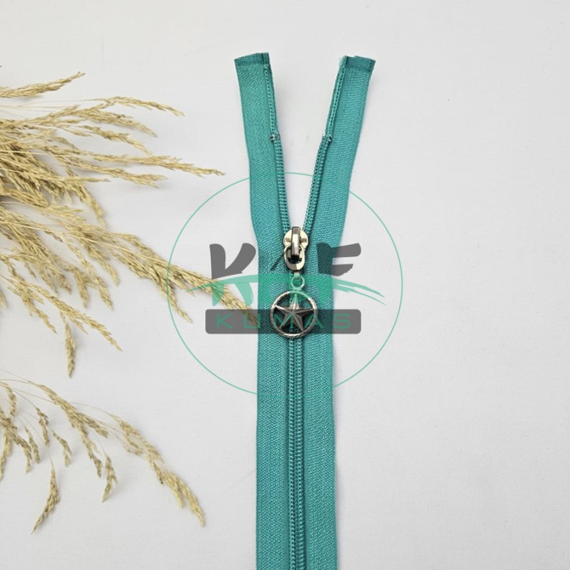 Turkuaz Renk Yıldız Elcikli Açık Uçlu Fermuar | Naylon Dişli Fermuar Uzunluk 70 cm