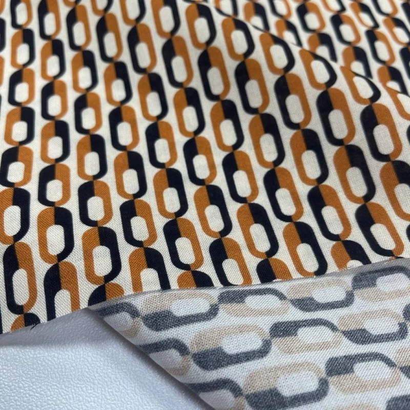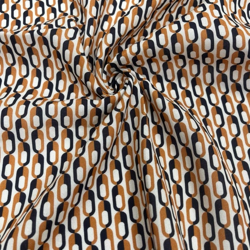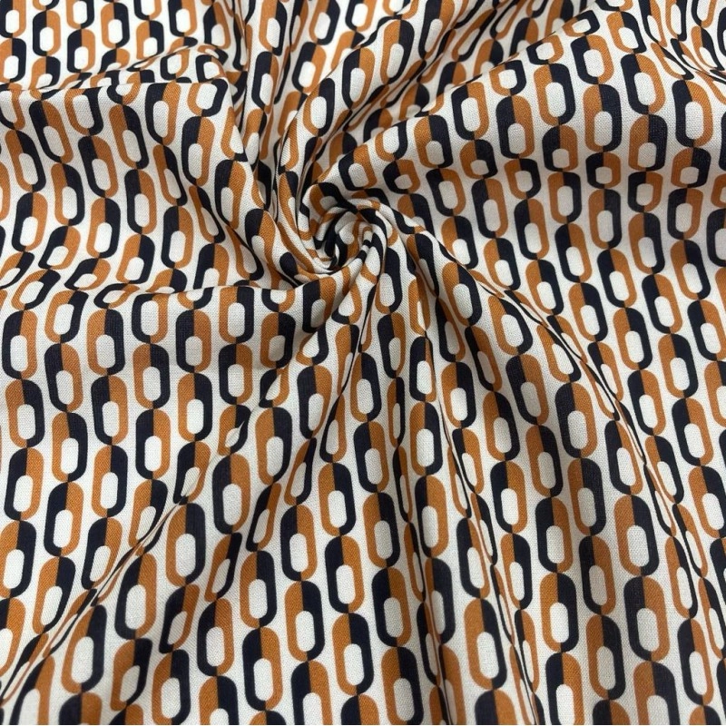 Viskon Dokuma Vual Kumaş | Turuncu Siyah Şekiller