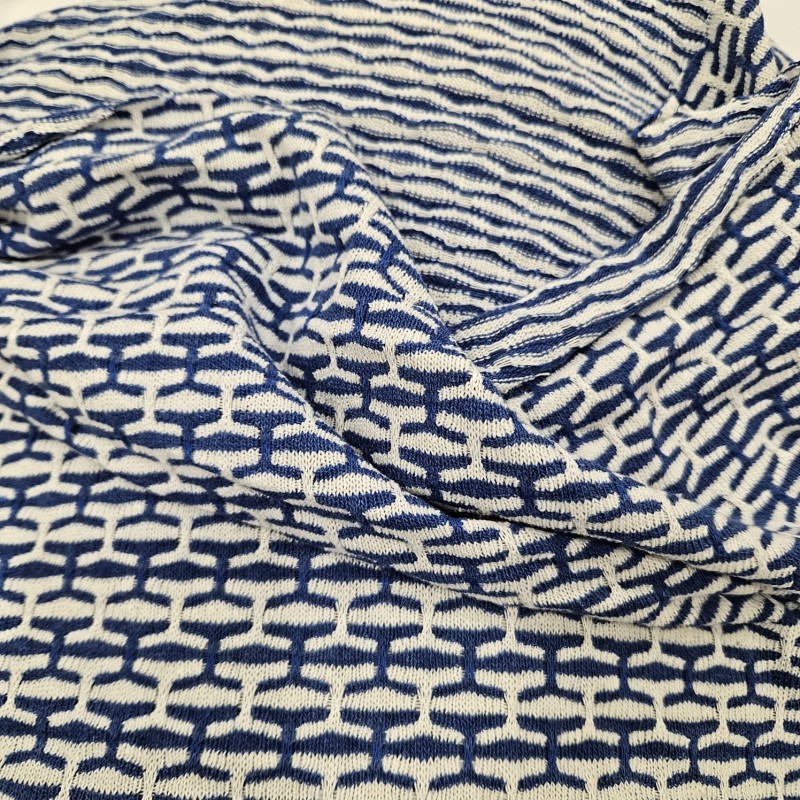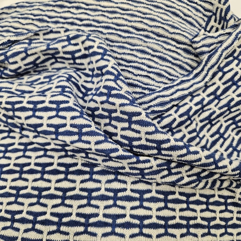 Zara Parça Kumaş | Mavi Beyaz Jakarlı Kumaş